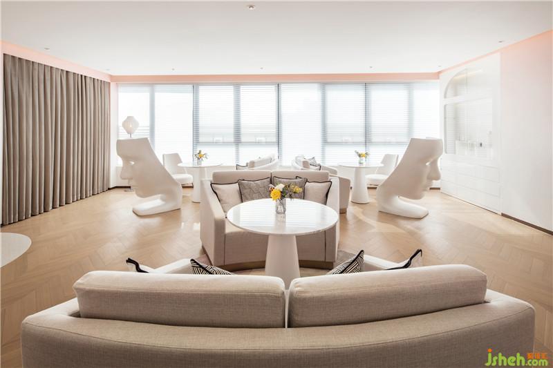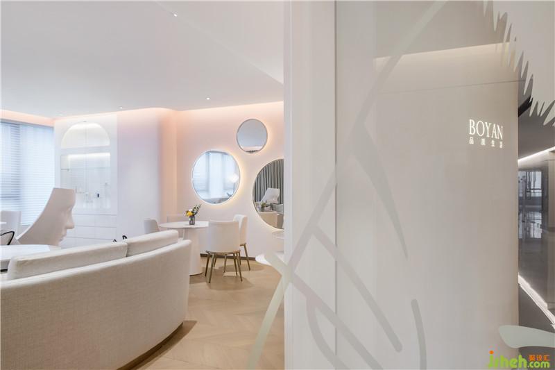 與治療區(qū)域一墻相隔的接待區(qū)的也同樣遵循這樣的原則。既提供給客戶安全隱私的洽談環(huán)境,又能在朋友聚會及新品發(fā)布會的功能之間相互切換,賦予客人不同的場景體驗。