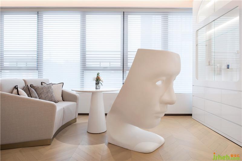 藝術(shù)向來是中熙設(shè)計的標簽之一,在項目中引入藝術(shù)家的原創(chuàng)作品,總能為空間帶來令人驚嘆的視覺效果和情感張力。治療區(qū)走廊盡頭墻上懸掛的藝術(shù)家組合Virut& Jane的藝術(shù)作品,利用時尚雜志中的女性圖片或相關(guān)文字拼貼而成肖像畫作,再用油彩上色,令來訪者紛紛駐足品味。在診斷室和病房,青年藝術(shù)家孫影“和臉有關(guān)的故事”,則展示了前衛(wèi)的油畫創(chuàng)作系列,這個項目體現(xiàn)出中熙設(shè)計的設(shè)計思維:空間需要藝術(shù),而藝術(shù)也成就了空間。