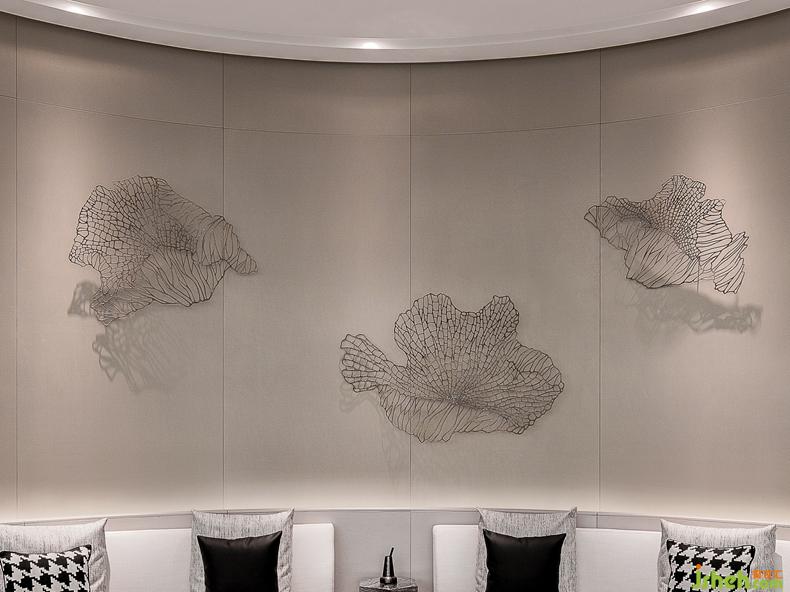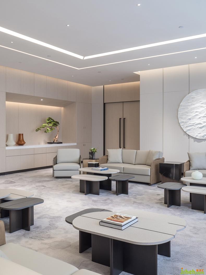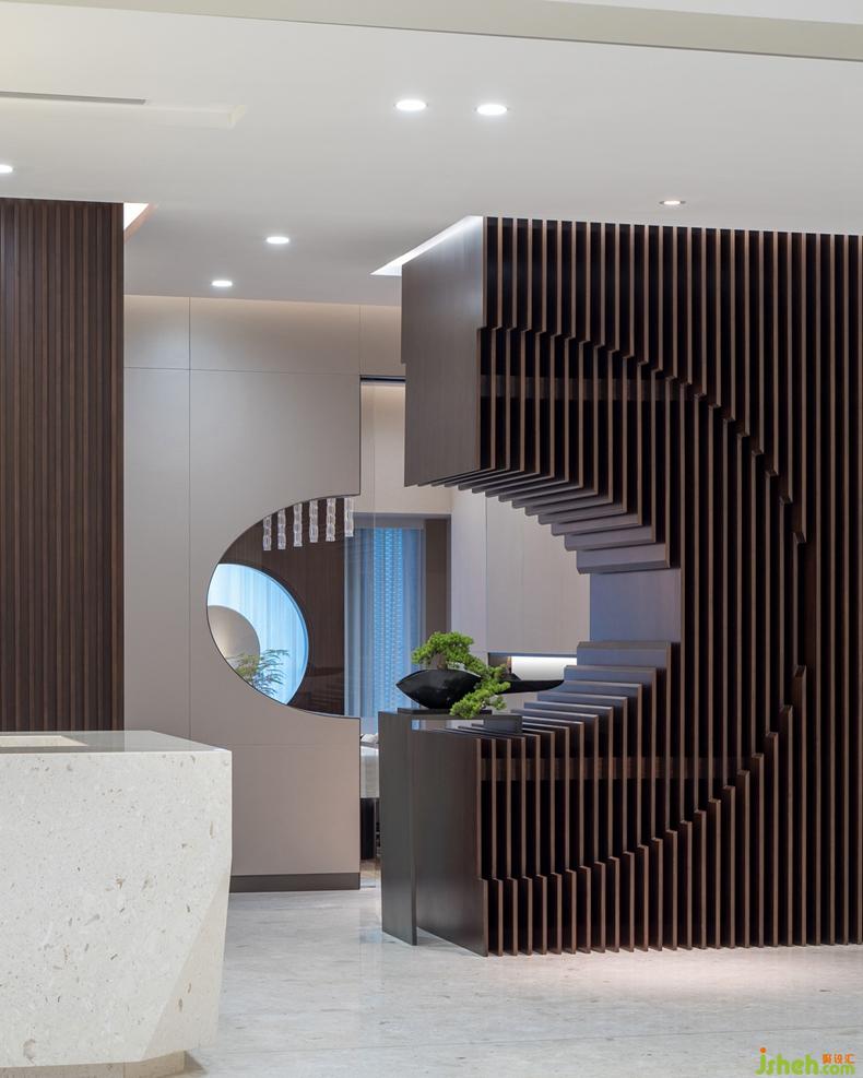 設(shè)計(jì)師在空間設(shè)計(jì)中并沒有刻畫或表現(xiàn)東方元素,但是項(xiàng)目巧妙地折射出了云淡風(fēng)輕的東方氣質(zhì),這或許來(lái)自木材、透光玉石、抽象油畫的搭配組合。