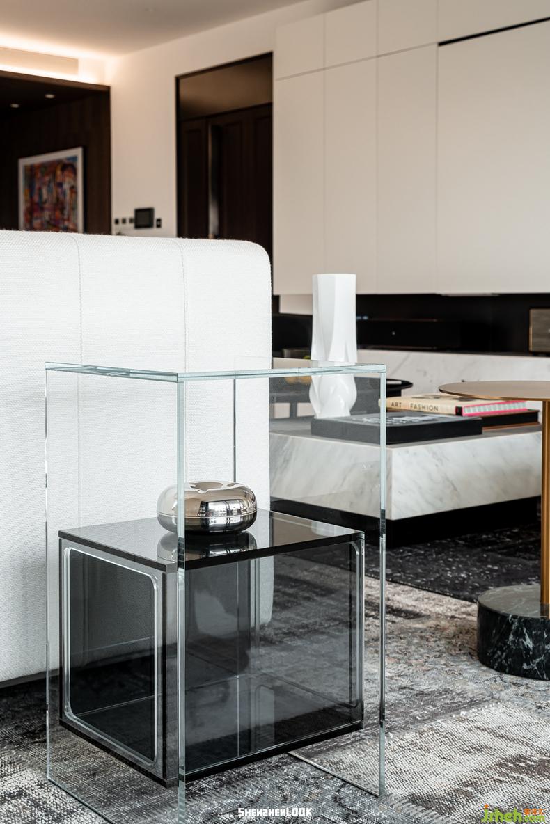 客廳沙發(fā)邊幾是來(lái)自意大利的Fiam Magique,在白色背景映襯喜愛弧形玻璃外觀現(xiàn)代意象十足,細(xì)節(jié)處又透露出生活溫度,獨(dú)一無(wú)二的特質(zhì)彰顯出眾的品位。