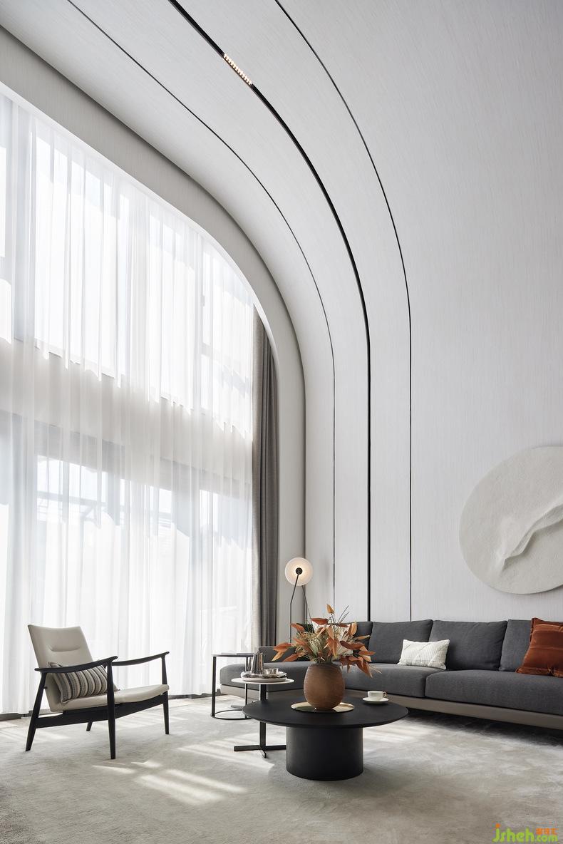 基于這種人居需求,別墅設(shè)計師汲取山海意象特點,以自然景觀與優(yōu)雅藝術(shù)氣質(zhì)為筆觸,勾勒出順應(yīng)城市氣質(zhì)與自然肌理的浪漫生活廓形。設(shè)計師試圖把室外的清新綠意采擷入室,讓業(yè)主在享受海風余韻的同時,還能時刻沉浸在清新充沛、綠意滿盈的自然環(huán)境中。