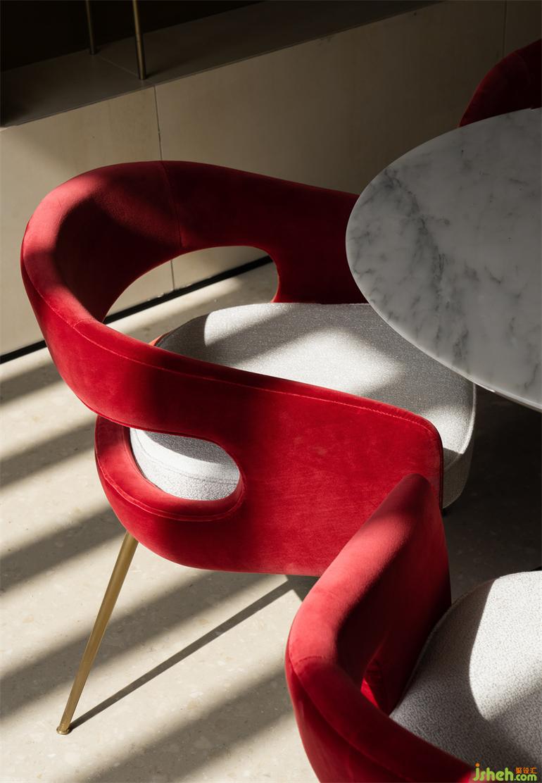 熱烈的情緒,在情景化的設(shè)計(jì)語(yǔ)言中傳遞,生活美學(xué)館設(shè)計(jì)師以低飽和色系為主,一抹特立獨(dú)行的紅色點(diǎn)綴洽談區(qū)的理性基調(diào),與金屬碰撞、與石材交融,靈感永續(xù)。