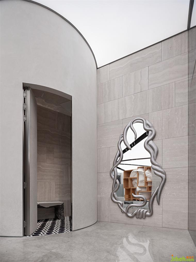 步入試衣間,流線金屬邊框勾勒的鏡面,以先鋒化的美學(xué)處理,再次刻下品牌文化的注腳?!坝谠O(shè)計而言,這一空間語言的力量,正來自于對傳統(tǒng)形態(tài)的高調(diào)反叛。更直接地說,華南旗艦店設(shè)計這創(chuàng)造了一種消費者與品牌、與服裝的獨特交流方式,并生動地表達(dá)著品牌的獨特氣質(zhì):獨具魅力、充滿韌性。”