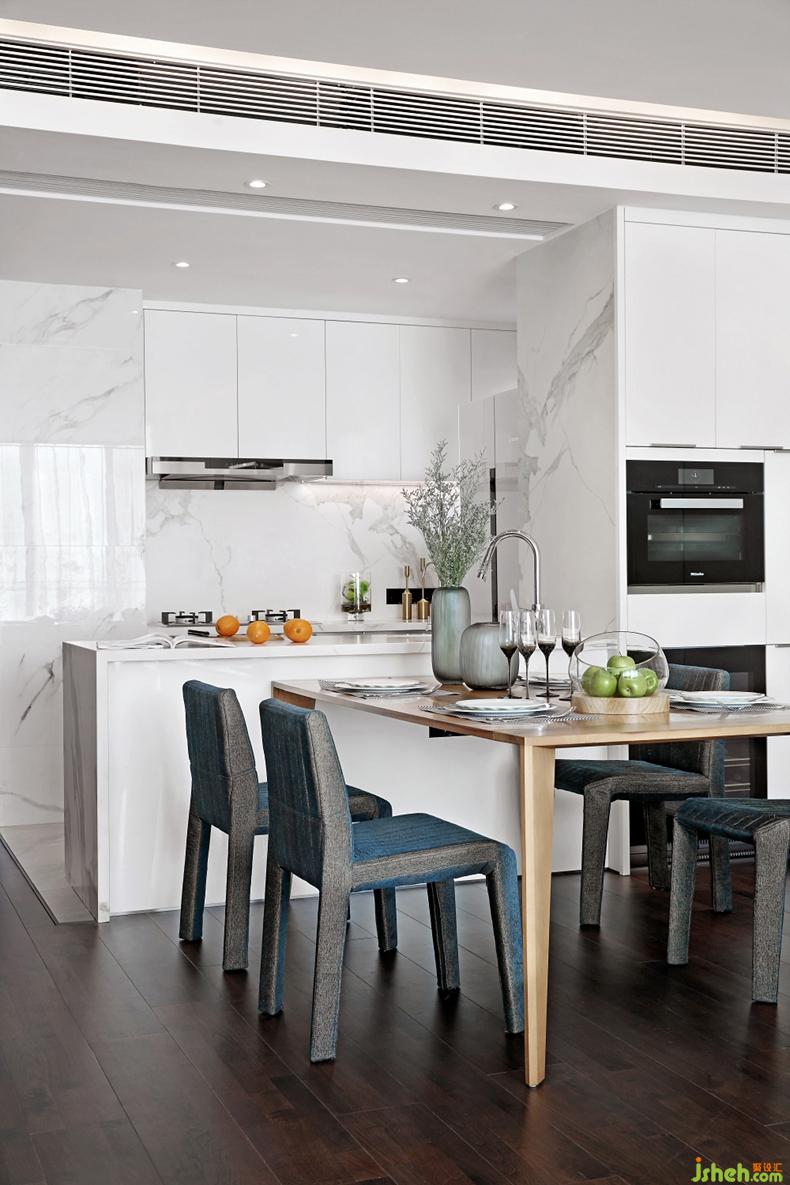 我們有意模糊各空間的界限,客廳作為空間樞紐區(qū)域,其軸動(dòng)線貫穿餐廳以及廚房,進(jìn)而創(chuàng)造一種趨于豐富且多元化的居家模式。深圳別墅裝飾空間簡(jiǎn)潔明凈,以白色為主基調(diào),溫和的淺灰色退居其次,結(jié)合白色大理石的自然紋理走向,讓空間背景兼顧美觀舒適的同時(shí),植入靜逸純粹的精神觀感。