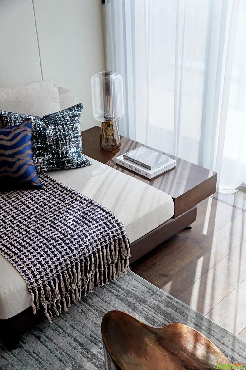 主臥室摒棄了過度的硬裝處理,視覺中大面積的留白,通過虛實(shí),顯隱,相得益彰,線條與塊面的組合穿插,塑造出整體的協(xié)調(diào)感和節(jié)奏韻律。深圳別墅裝飾高挑移門巧妙將主臥衛(wèi)生間及衣帽間合理分隔,讓空間重疊于開放空間到私密空間之間,透過室外自然光線的變幻,從明亮緩緩帶入昏暗,營(yíng)造出撫慰人心的生活起居所。