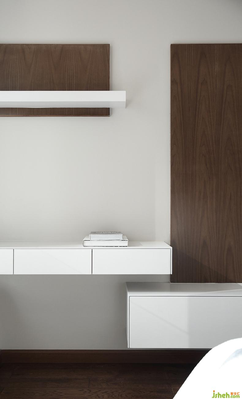 主臥是最愜意閑適的地方,以穩(wěn)重雅致的胡桃木色作為房間的主色調(diào),與白色家具的交錯(cuò)更像是一幅幾何形塊的畫作,透過黑白關(guān)系,褪去張揚(yáng),優(yōu)雅而至。
