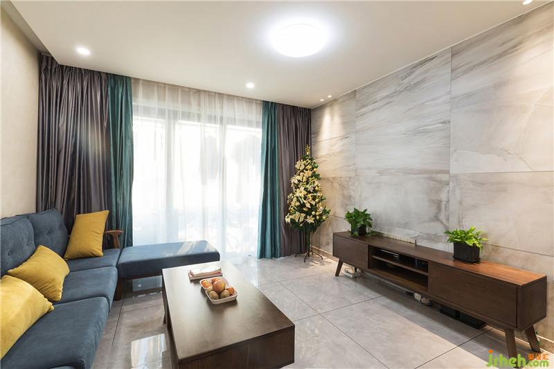 用材:櫥柜--歐派,地磚--歐神諾,電視背景墻磚--寶路莎, 電器--方太,涂料--威羅,潔具--科勒,鋁合金--壹號門窗