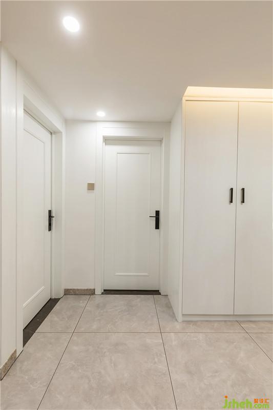 利用過道空間,小孩房衣柜朝外打開,增加了收納也方便了取用。冰箱側(cè)面和衣柜之間空間略顯逼仄,設(shè)計以鏡面,拉開了空間,儀容鏡恰到好處的出現(xiàn),讓生活日常更美麗。門把手選擇精致,讓簡單的過道提升了質(zhì)感。