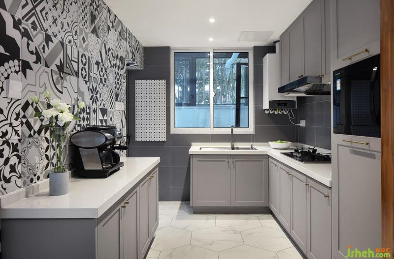 廚房為開放式,功能齊全,將冰箱放置餐廳后變得更加輕松。你和孩子在餐廳,看著廚房中她的側(cè)臉,勞累煙消云散。