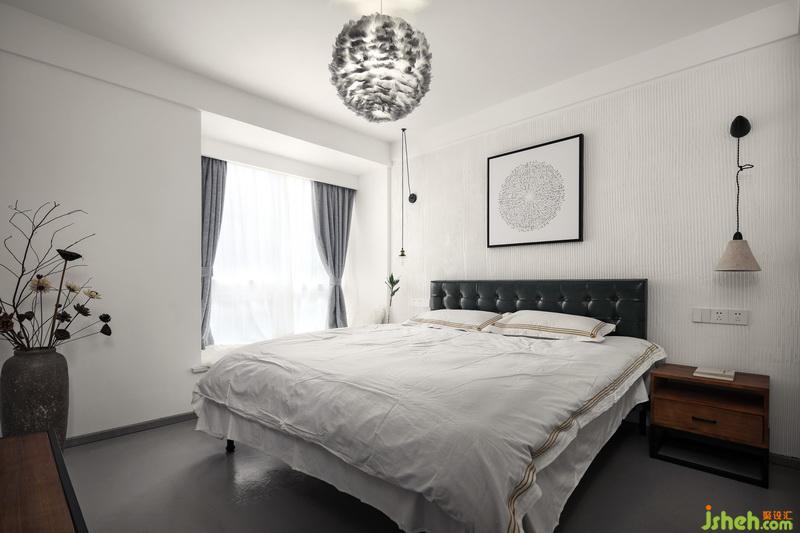 主臥室的搭配融合整體,平淡安靜。鋪了毛墊的飄窗,溫暖的陽光下在這發(fā)呆與閱讀,床頭抽象黑白裝飾畫點到為止。