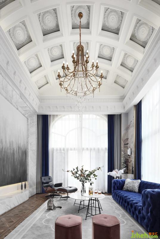 結構方面改動頗少,而在軟裝方面重點著墨。客廳穹頂靈感來源于羅馬教堂,取其形舍其式,呈現出一種典雅的秩序美。