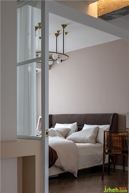 主臥室同樣采用溫柔大地色系和整體進行呼應(yīng),咖色絨布床頭和棉質(zhì)床品,讓家居氛圍更加溫馨。室內(nèi)設(shè)計師