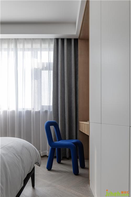 主臥在材質(zhì)以及色彩上呼應(yīng)整體,大量柜體解決日常所需儲(chǔ)物功能。