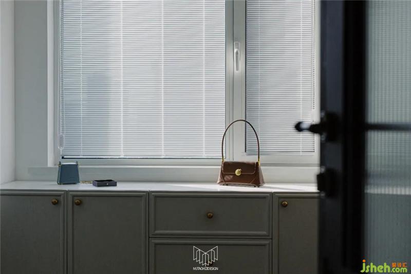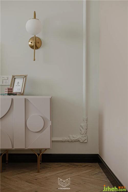 將西邊房間門口墻體稍作改動(dòng),南北墻體預(yù)留定制柜體位置,窗戶下方做地柜,南京室內(nèi)設(shè)計(jì)師原門洞擴(kuò)大,定制雙開鐵藝玻璃門,讓更多采光進(jìn)入過道。