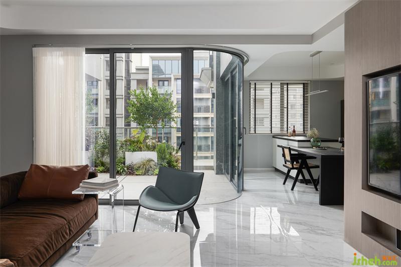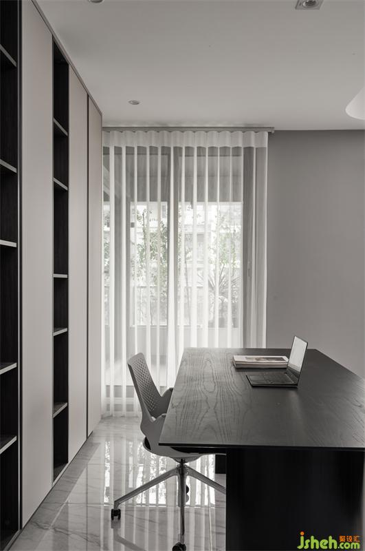 豎百葉代替?zhèn)鹘y(tǒng)窗簾,增加現(xiàn)代感,并隨時間映射出不同的光影