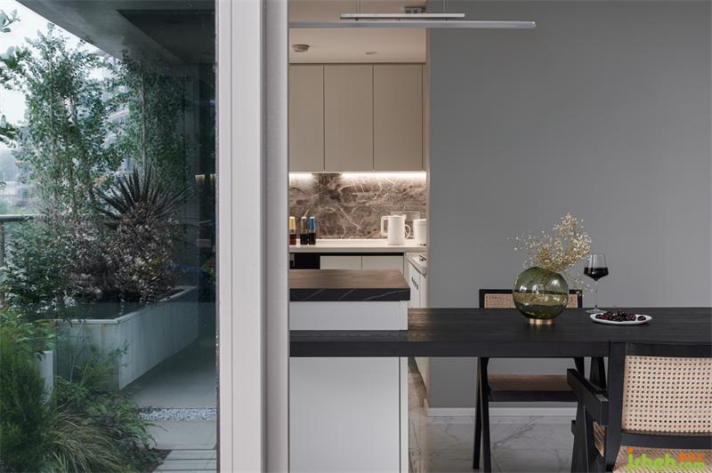 客廳,書房,餐廚空間一體排開,同時環(huán)繞空中花園,居家就能感受春華秋實。