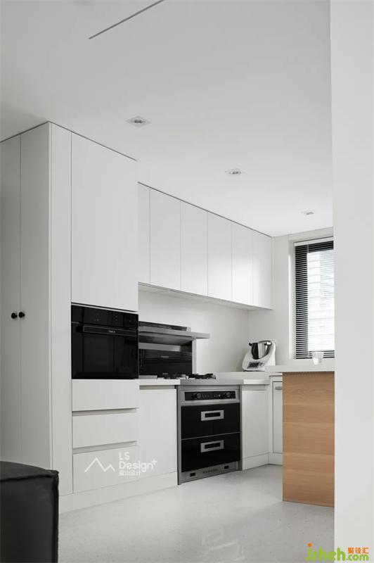 餐廚空間是將原有的次臥打開,生活陽臺(tái)外移,形成方正開闊的餐廚空間。色調(diào)極其簡(jiǎn)潔,素雅的線條,摒棄一切多余,營(yíng)造出日日是好日的安逸生活。