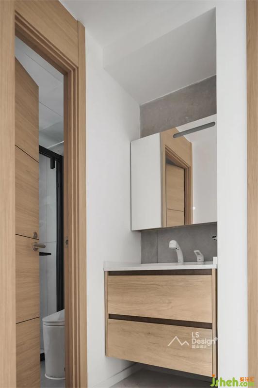 衛(wèi)生間皆為灰色的素雅磚,次衛(wèi)采用分離式,公區(qū)不會(huì)因?yàn)橄词兊眯l(wèi)生間使用緊張。次臥延續(xù)整個(gè)房子調(diào)性設(shè)計(jì),簡(jiǎn)潔干練。