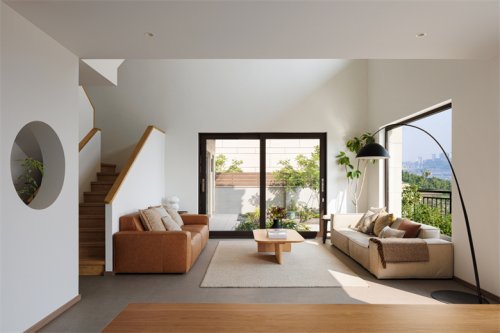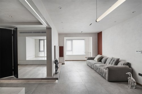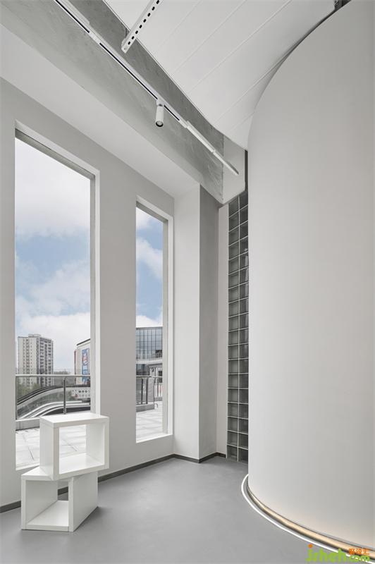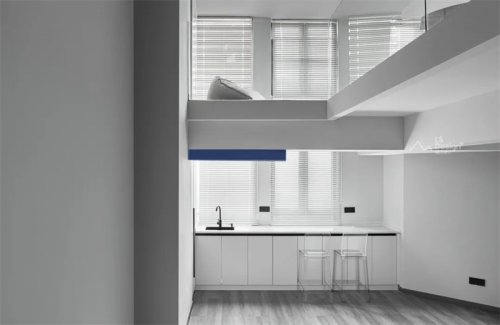 休閑空間在窄長(zhǎng)的過道空間的對(duì)比下更加寬敞