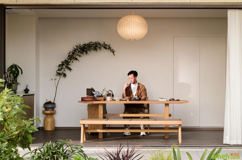 設(shè)計(jì)師周子鑒友情出鏡,茶室正對(duì)整個(gè)花園;品茗而賞美景,寧?kù)o致遠(yuǎn)。