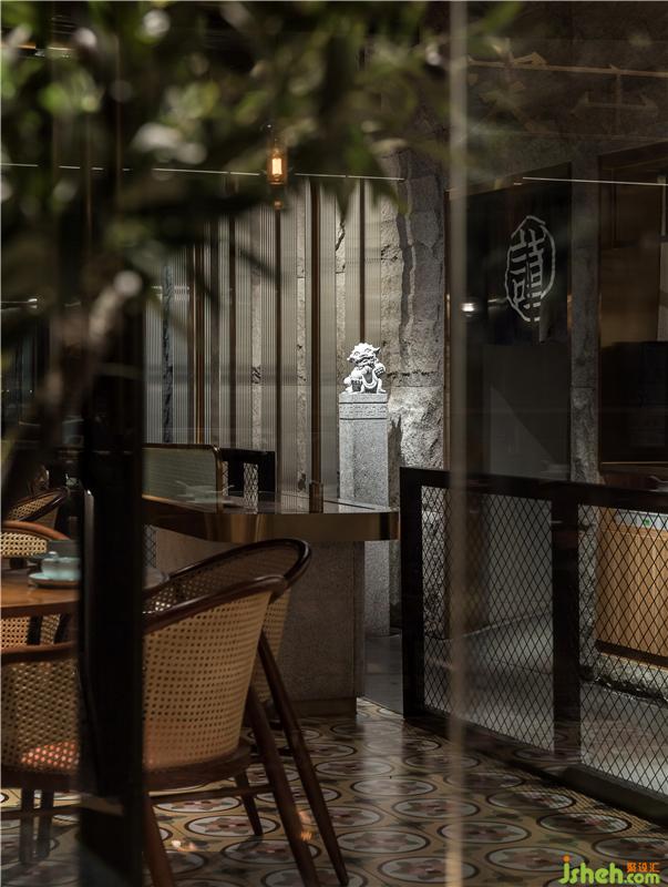 在餐廳裝飾材料設計使用上,大量采用泉州白花崗巖裝飾、閩南老花磚、泉州惠安石雕、石頭茶臺等一系列老泉州記憶的元素來設計構造整個餐廳空間泉州餐飲設計。