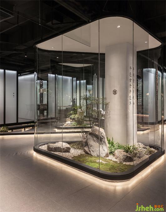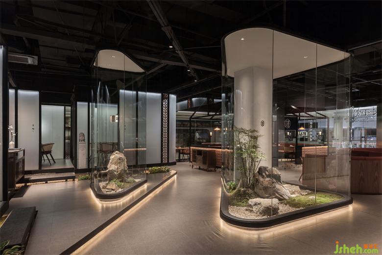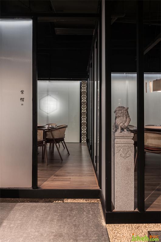 枯石中半遮半掩的一抹綠枝,讓人暫時(shí)脫離喧囂,感受“閩南山水”的神韻所帶來(lái)內(nèi)心的片刻寧?kù)o,以及新派閩南餐飲空間所帶來(lái)的那份靈感!