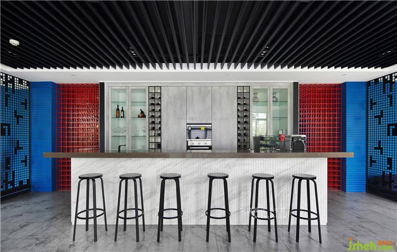 總裁辦公室為新中式風(fēng)格。這樣的風(fēng)格顯然更加適用于來賓訪問及商務(wù)洽談。然而在穩(wěn)重的新中式風(fēng)格中出現(xiàn)的一個(gè)頗具現(xiàn)代風(fēng)格的藍(lán)色茶幾,就會(huì)一下成為躍動(dòng)的視覺亮點(diǎn),為初次見面的人提供了話題,同時(shí)也表達(dá)了空間使用者無法掩飾的幽默風(fēng)趣、不拘一格的性格。