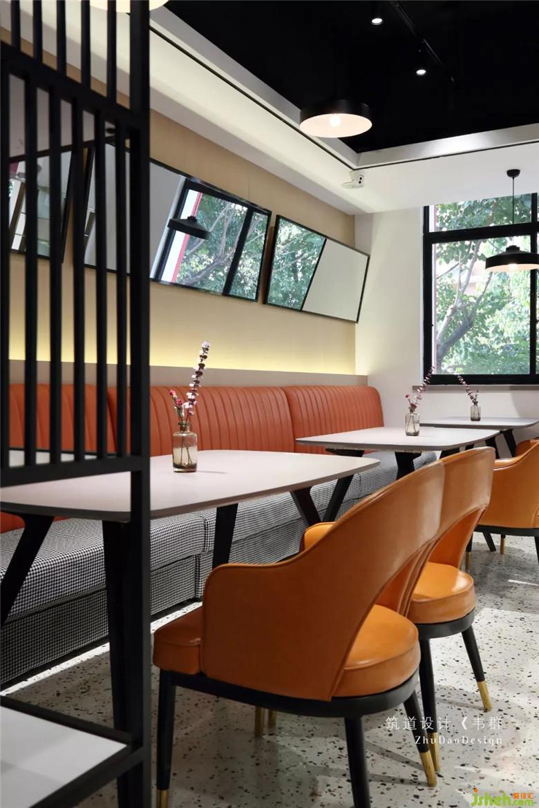 主要的用餐區(qū)都集中在二樓。利用窗邊結(jié)構(gòu)的凹凸關系,放入不同餐位的桌椅,很好地融進窗邊,再輔以整幅落地窗,使得最大限度地納入采光,好似有放大空間的效果。