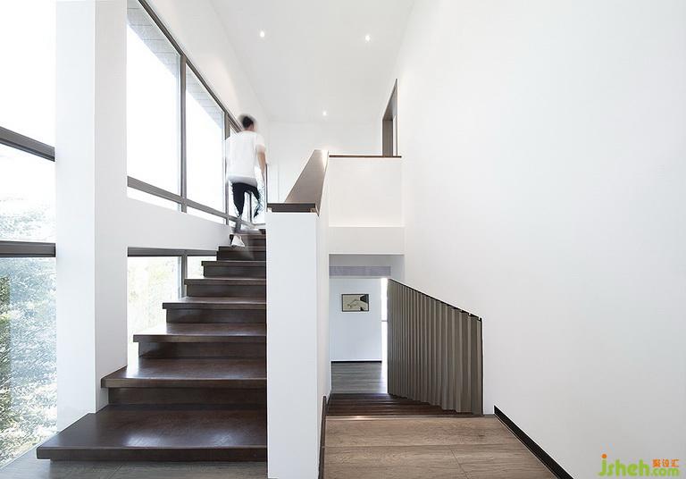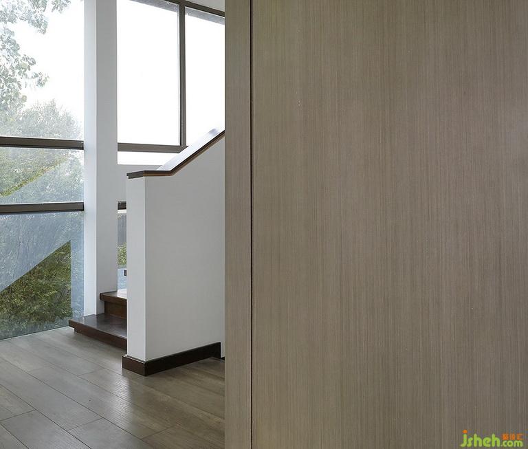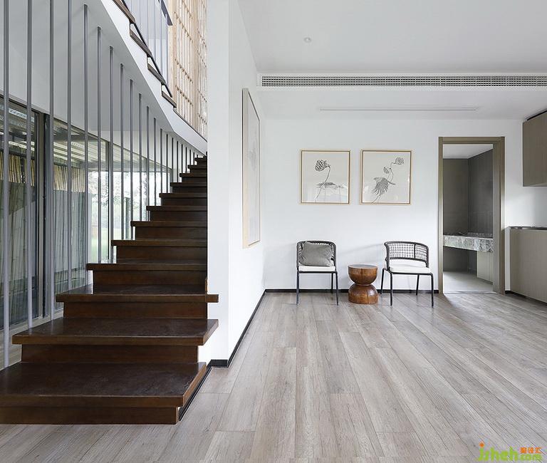 設計師圍繞這個理念在本案中的設計采用簡約的風格回予自然, 拋去紛繁, 以白色、原木色為主調(diào),外觀上采用大面積的落地窗和開放布局,打破空間界限, 意將大自然景色與室內(nèi)融為一體。