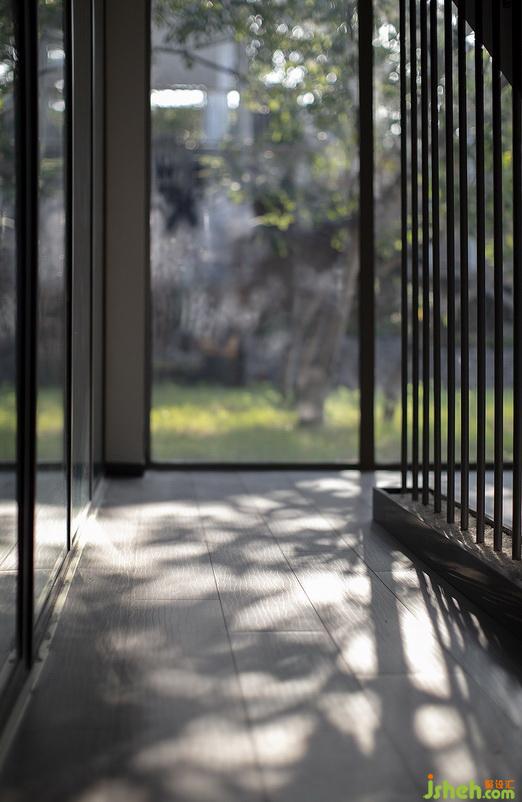 溫暖而不炙熱的陽光透過落地玻璃,灑在木制的地板上,充滿生機,疏影婆娑,整個空間與室外相呼應。