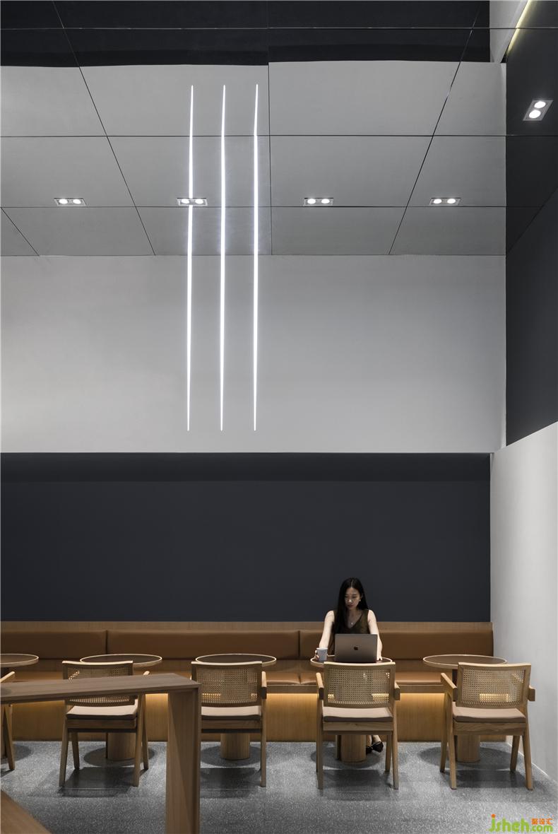 C在前臺點了一杯拿鐵,打開電腦瀏覽了一遍郵件內(nèi)容便開始處理工作。扎著辮子的咖啡師把剛打磨好的咖啡壓好扣進咖啡機,服務生安靜而禮貌地穿行在座位間,舒緩的音樂像是也融入了咖啡里。酒吧設計