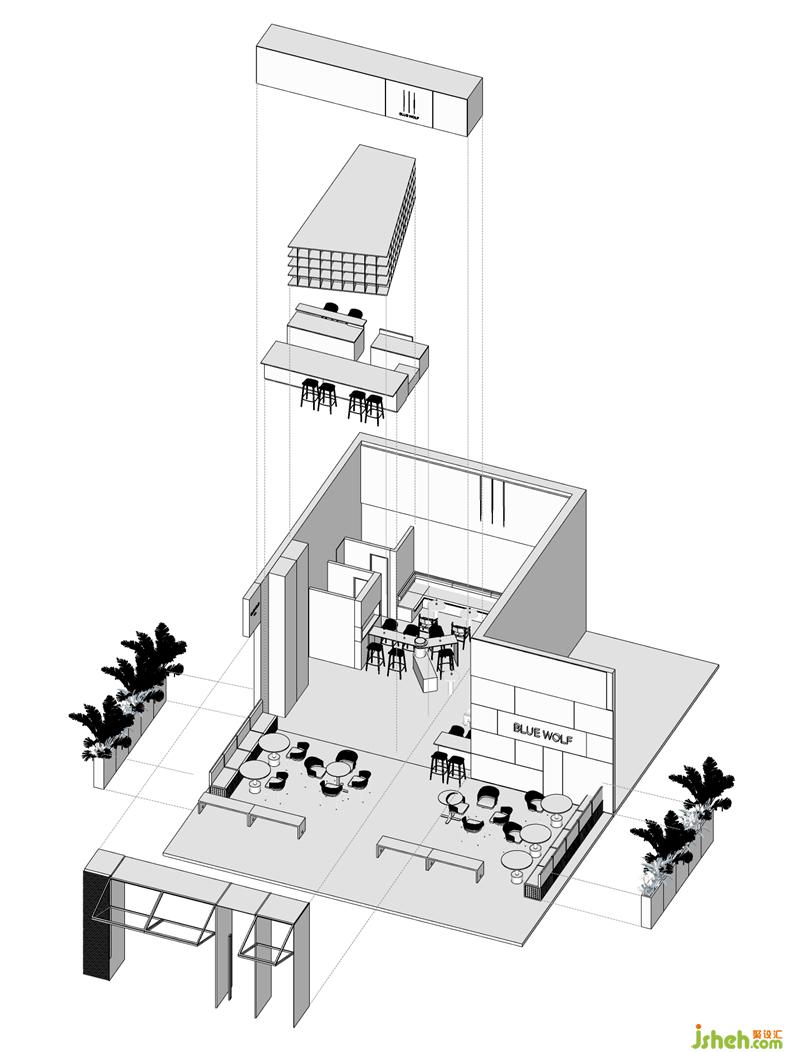 原來(lái),這個(gè)女人是Blue wolf的老板娘。也許是她知性而富有魅力,言語(yǔ)間能讓人卸下心防;又也許是酒精作祟,C在閑聊的過(guò)程中不知覺(jué)便坦露了心里的想法。酒吧設(shè)計(jì)