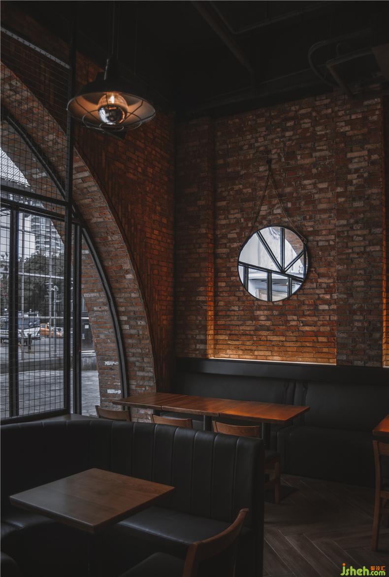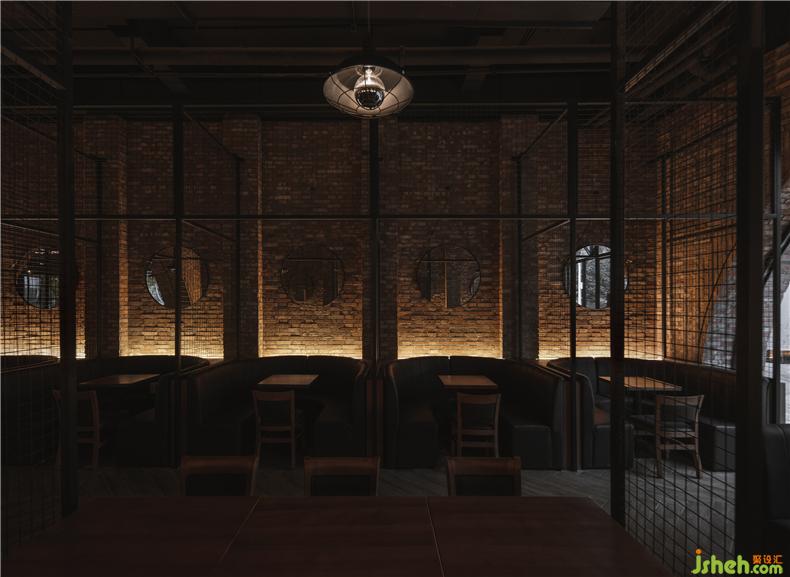 東邊的卡座區(qū)則用黑色的鐵藝網(wǎng)格分出了一個個小隔間……黑色的皮質(zhì)沙發(fā)、黑色的吊燈、黑色的裝飾鏡,這些深色的點(diǎn)綴讓這個區(qū)域的氛圍與大廳相比更具沉淀感,讓那些想享受酒精又不愿被喧囂打擾的酒客,也能在此找到隱身之所。酒吧設(shè)計