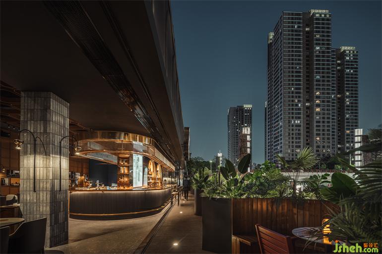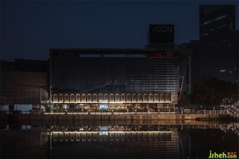 在燈火搖曳的千燈湖畔,Time將自己脫離各式酒吧的包圍圈,酒吧設(shè)計(jì)從容置身于喧囂彼端,與他們隔水相望。