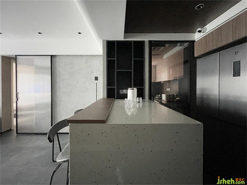 室內(nèi)設(shè)計(jì)入口鞋柜的側(cè)邊做了一排格子展示柜,方便展示主人一些精致的手辦,同時(shí)也因?yàn)槭洲k獨(dú)有的時(shí)尚魅力讓人一進(jìn)門就有種與眾不同的而感覺,這也是入口的儀式感。