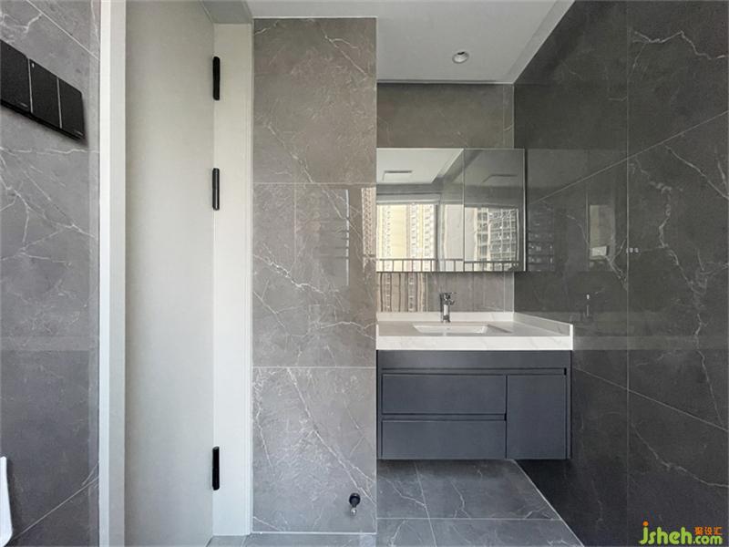 ?公衛(wèi)-原來尺寸偏大,縮小比例,讓次臥房變大,定制的白色花紋巖板洗手臺(tái),臺(tái)面延伸至壁掛式馬桶位,既增加了臺(tái)面的儲(chǔ)物實(shí)用度,又增加了淋浴區(qū)的空間,讓原本不可能的干濕分離得以實(shí)現(xiàn),大大的改善了衛(wèi)生間的水汽問題,也更整潔美觀了。