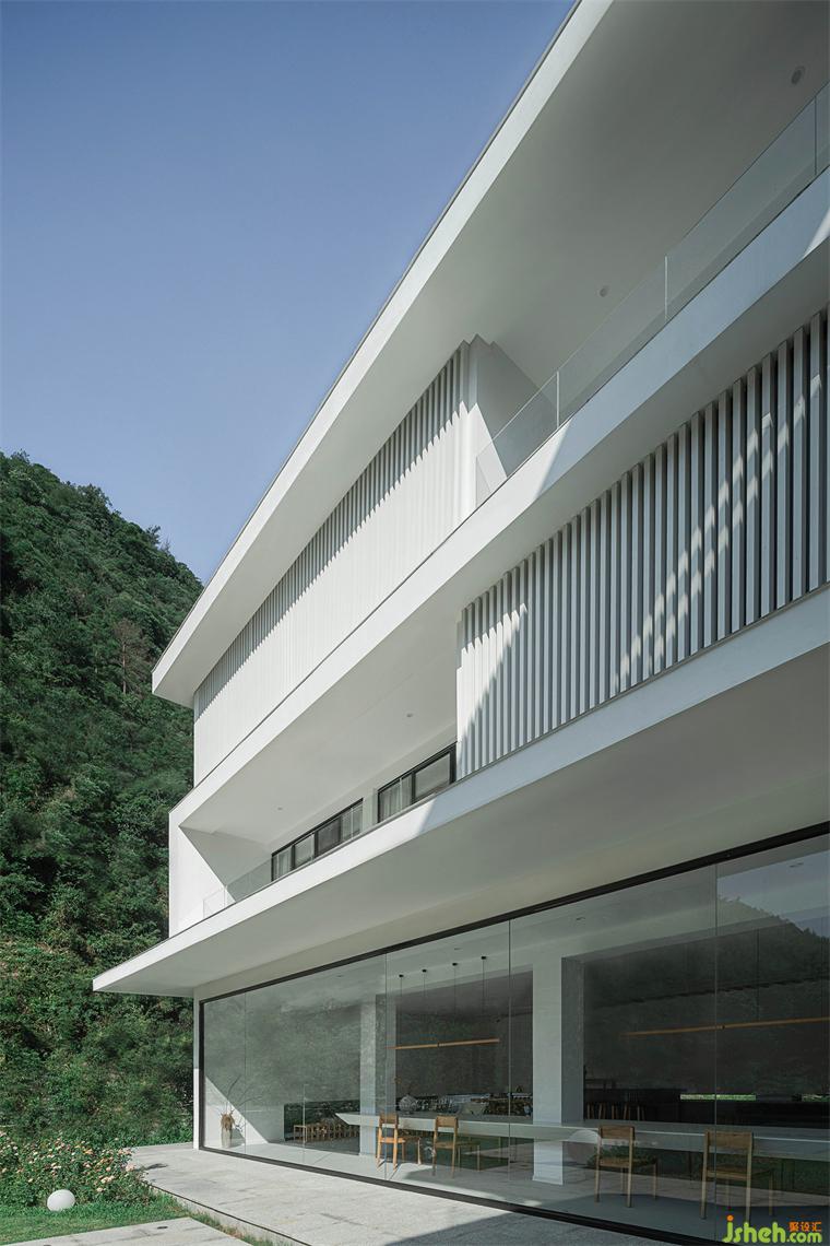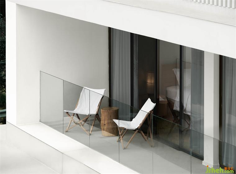 建筑與室內(nèi)由單純的幾何體構(gòu)成,靈動(dòng)穿插,酒店設(shè)計(jì)室外向室內(nèi)滲透,室內(nèi)向室外溢出,二者互相融合,邊界消弭。