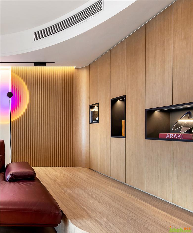 The designer combined with the actual needs of the owners, considering the safety of children playing in the future, carried out arc treatment on the ceiling and facade, weakened the existence of the beam, and made the space softer and more regional. Different arcs set off each other in the space, and the mellow lines bring visual comfort to the residents.