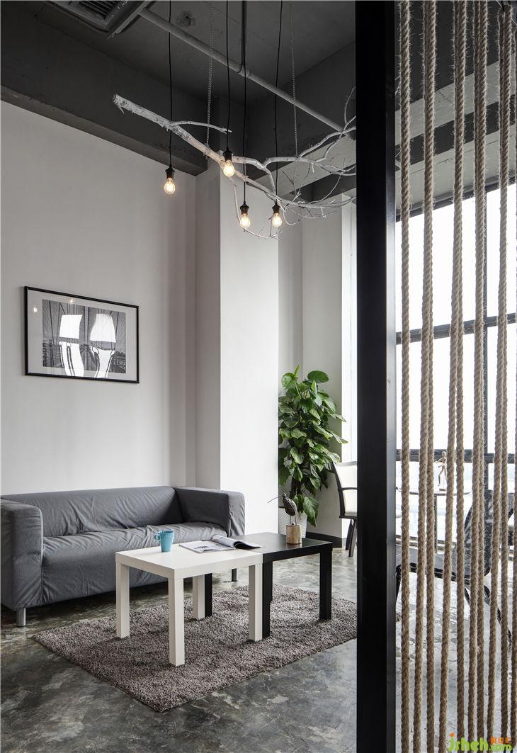 宜家的灰色克利帕沙發(fā)搭配黑白兩色混搭的克拉克邊桌,吊頂部分用廢棄的樹枝噴白處理,配合復(fù)古白熾燈,滿足性價比和裝飾效果。設(shè)計公司