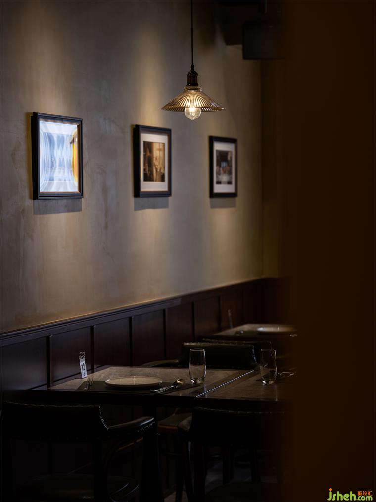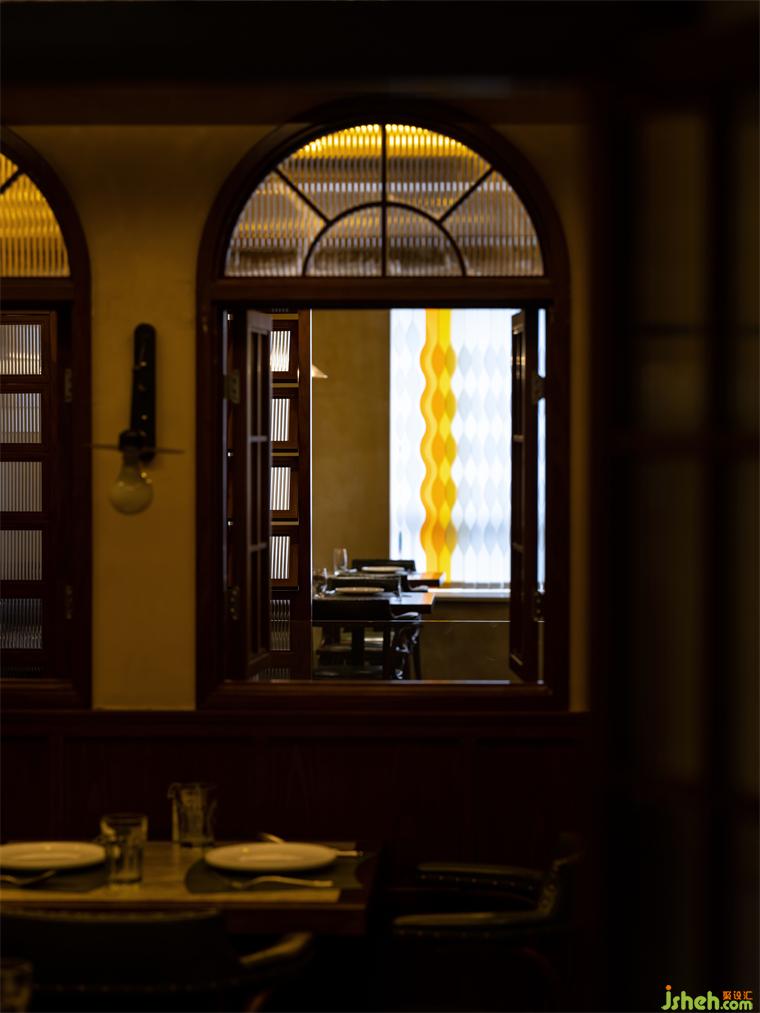 二層作為主要的客坐區(qū),20米長的南北開間被設(shè)定為4個(gè)層次,承擔(dān)獨(dú)立客流的散座區(qū),緩沖區(qū)樓梯平臺(tái)及玄關(guān),卡座區(qū),以及相對獨(dú)立的閉合空間,不同的空間可以應(yīng)不同的使用要求而作出場景的變化。餐廳設(shè)計(jì)在設(shè)計(jì)定調(diào)上充分考慮餐廳客群的年齡層,整體風(fēng)格及色調(diào)避免年輕的網(wǎng)紅化,同時(shí)也防止過于沉穩(wěn)而顯得老氣。