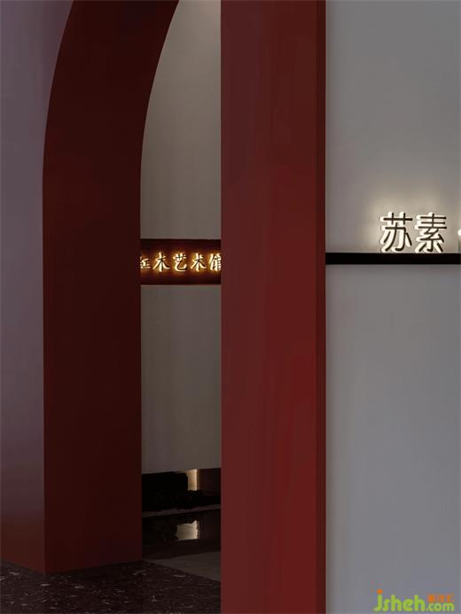 赤色在傳統(tǒng)五色觀色彩理論中屬正色;在五行觀中屬南方。蘇素明式非遺傳承館設(shè)計(jì)被納入赤色系列的紅色則象征著吉祥、喜慶、熱鬧與熱情。紅色貫穿了整個(gè)華夏歷史,是中華文化的深厚底色。選用赤紅作為點(diǎn)睛之色亦是響應(yīng)蘇作紅木的文化底蘊(yùn)。