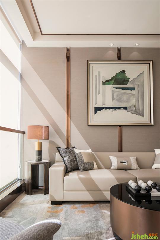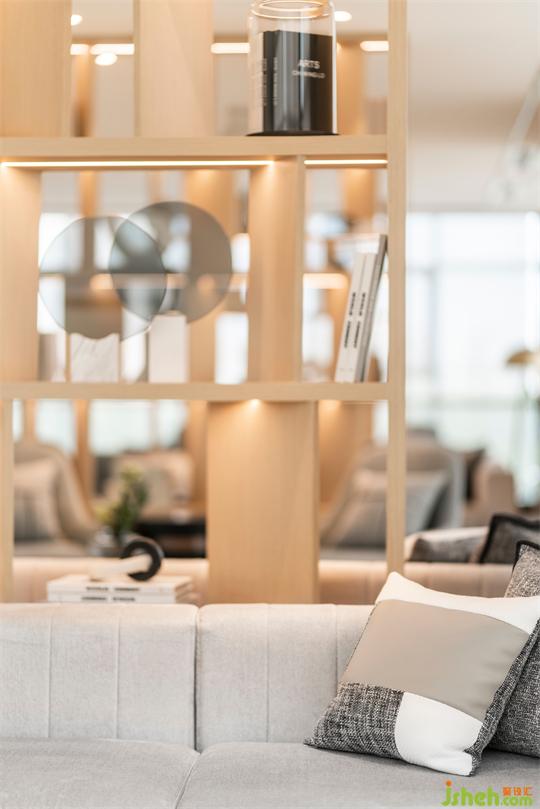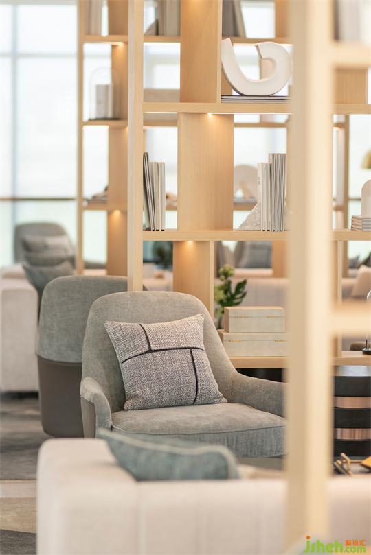 南寧售樓處設(shè)計空間風格混搭融合,黑色鐵藝與實木書架為視覺焦點,金屬純粹的線條和木質(zhì)的溫潤質(zhì)感剛?cè)嵯酀湟愿挥鞋F(xiàn)代感的淺灰色地墊和品質(zhì)沙發(fā),優(yōu)雅清新氣息沁人心脾。