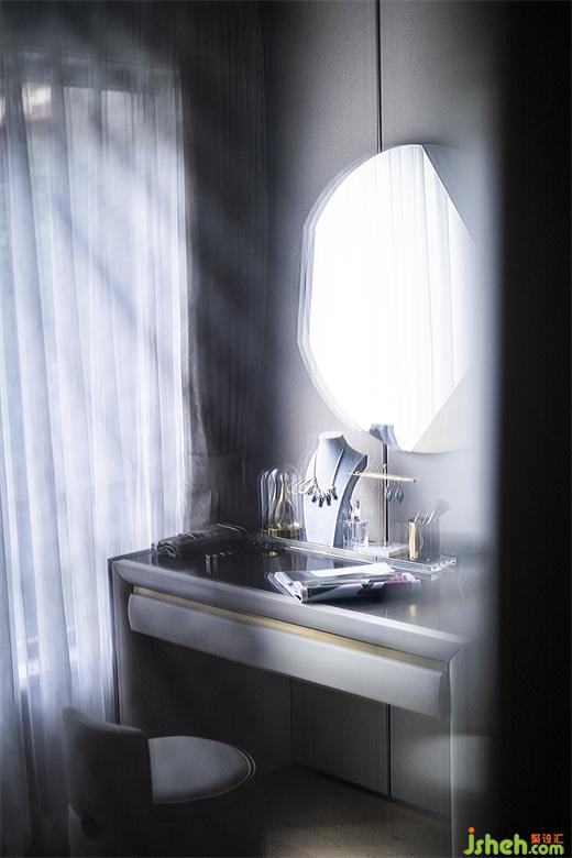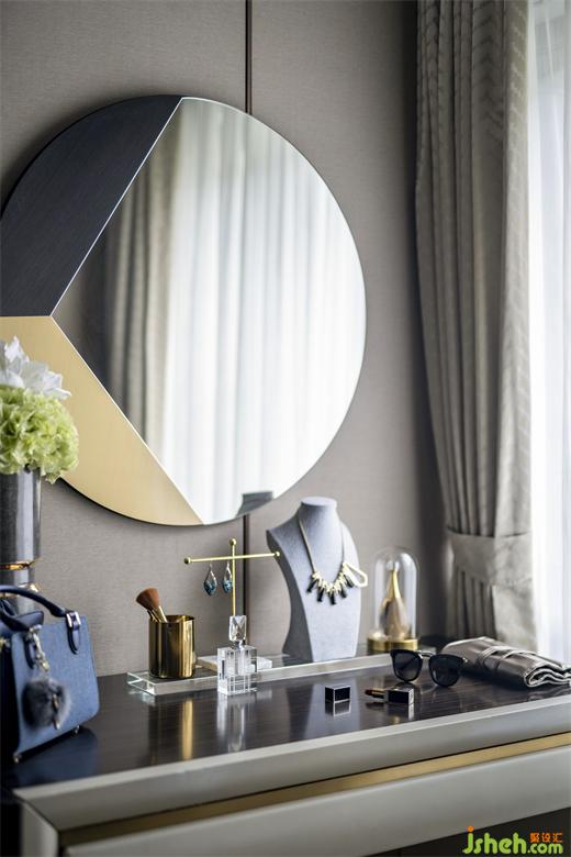 衣帽間格調(diào)同樣溫馨,又是設(shè)計師一處時尚之作。時髦的絲巾、高雅的單鞋、優(yōu)美的鮮花,足見屋主對生活的熱愛和品質(zhì)追求。