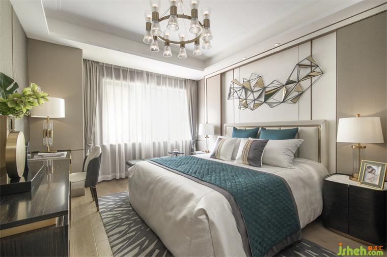 開放的客餐廳、廚房,空間更寬敞明亮,動性亦更流暢。山水抽象畫,流動的靈性,使空間更具層次及藝術(shù)格調(diào)。晶瑩剔透的水晶燈,精致的餐具擺飾,經(jīng)典時尚的格紋,無一不在宣示品質(zhì)的生活追求。此外,花飾朝氣蓬勃,樣板房設(shè)計不僅滿足女主的喜好,亦為空間注入自然活力。