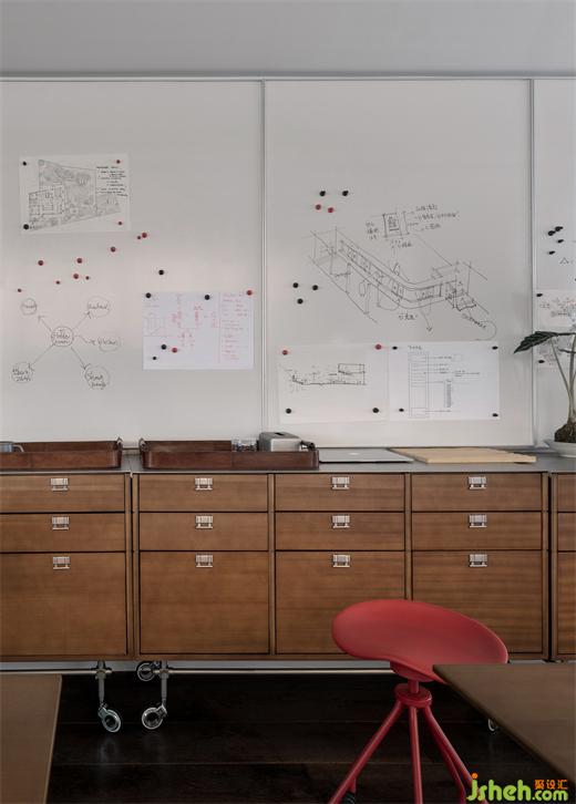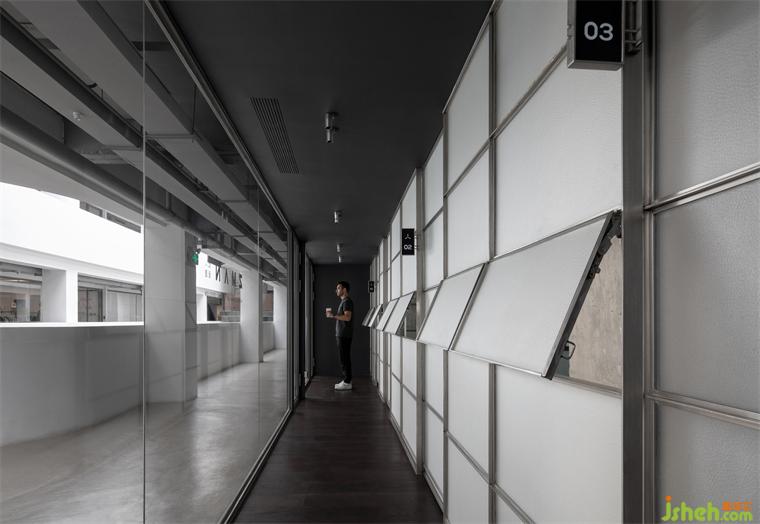上海辦公室設計在通風的開啟扇上植入了較精致小巧的五金結(jié)構(gòu)支架和滑輪