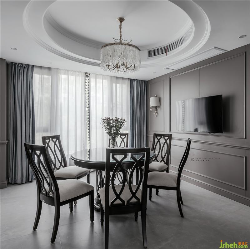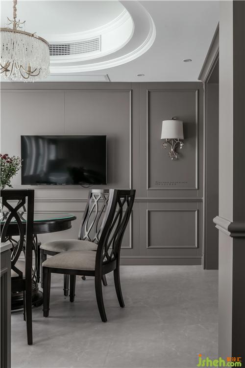 餐廳的灰色延續(xù)了整個(gè)空間的主色調(diào),獨(dú)立又有鏈接;別墅裝飾