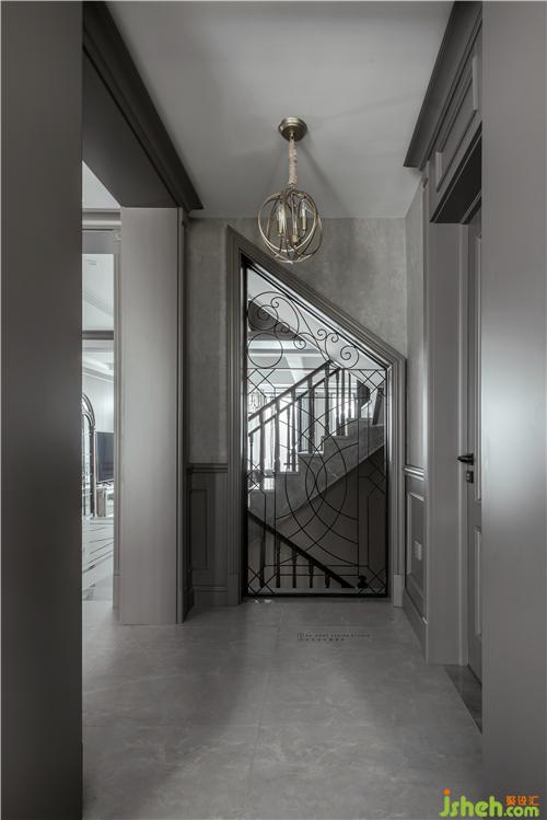 樓梯空間的褐灰色的色調(diào)搭配,延續(xù)了整個(gè)空間的主色調(diào);別墅裝飾