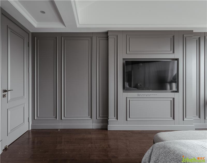 依然延續(xù)了灰色護(hù)墻板,臥室家具的低調(diào)華美,凸顯出宮廷貴族氣息;別墅裝飾