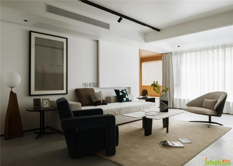 客廳的陽(yáng)臺(tái)自然光線充足,結(jié)合多元的點(diǎn),線面光源,層次豐富且具有變化,予整個(gè)家居空間賦能。