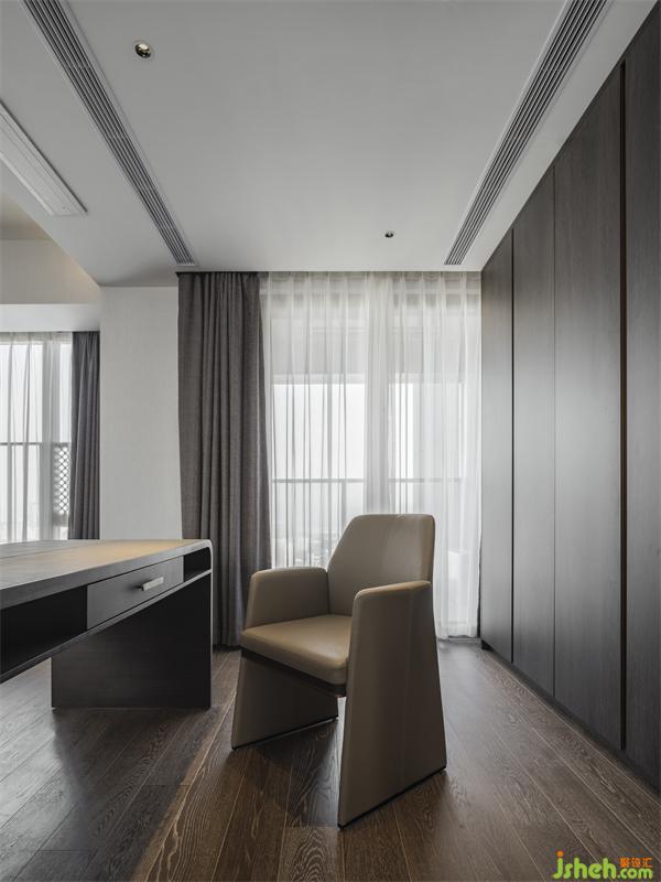 將原有主臥旁的小房間與主臥打通,在這里主人可以擁有一張2米的大床和獨(dú)立寬敞的辦公休閑空間。室內(nèi)設(shè)計(jì)師光線透過飄逸輕盈的紗簾在空間里自由蔓延,給繁重的辦公帶來一絲慵懶愜意。